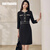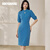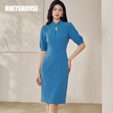 ROEYSHOUSE罗衣复古新中式蓝色修身连衣裙女春季中国风通勤镂空改良裙08322 蓝色 S