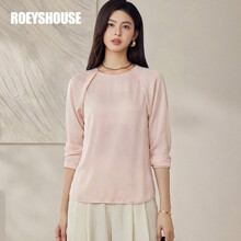 ROEYSHOUSE罗衣温柔气质浅粉圆领宽松衬衫女春通勤显瘦垂坠感长袖上衣10433 浅粉色 S