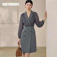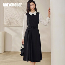 ROEYSHOUSE罗衣设计感拼接纯色连衣裙女春季通勤灯笼袖长袖收腰西装裙07317 拼色 S