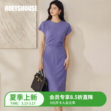ROEYSHOUSE罗衣优雅女神范紫色针织连衣裙女夏气质连袖收腰圆领中长裙12345 紫色 S