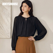 ROEYSHOUSE罗衣优雅职场缎面拼接雪纺衬衫女春轻奢高级感镂空黑色上衣13643 黑色 S