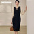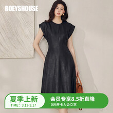 ROEYSHOUSE罗衣高级感亮丝黑色连衣裙女夏季简约职场大摆连袖中长裙子10259 黑色 S