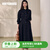 ROEYSHOUSE罗衣干练职场黑色长绒棉连衣裙女早春高智感商务系带大摆裙13236 黑色 S