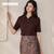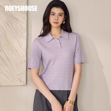 ROEYSHOUSE罗衣简约时尚百搭麻花咖色针织衫女春职业OL风翻领短袖上衣13619 沐浅紫 M (适用于正常S/M码)