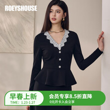 ROEYSHOUSE罗衣优雅淑女风V领荷叶边针织衫女春时尚拼接轻商务黑色上衣13607 黑色 S