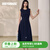 ROEYSHOUSE罗衣优雅商务深蓝大摆连衣裙女早春精致立体花无袖中长裙子13375 深蓝色 S