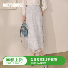 ROEYSHOUSE罗衣设计感蕾丝绣花灰蓝色半身裙女春季温柔网纱高腰A字裙子13271 灰蓝色 S