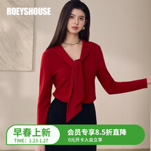 ROEYSHOUSE新年专供款|罗衣轻熟休闲红色修身针织衫女春时尚飘带V领T恤13255 红色 S