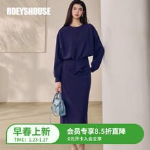 ROEYSHOUSE罗衣日常休闲收腰肩扣针织套装女春季深蓝上衣半身裙两件套13334 深蓝色 S