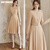 ROEYSHOUSE罗衣小香风连衣裙秋冬新款气质系带收腰粗花呢中长裙09601 卡其色 XL